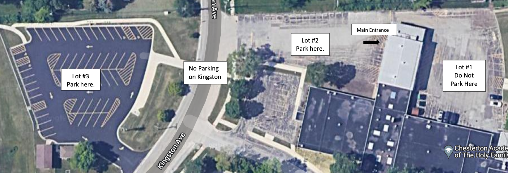 Please use this map for parking lot and entrance locations for Sports, Drama and other school events.