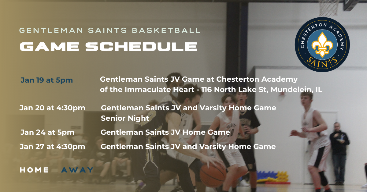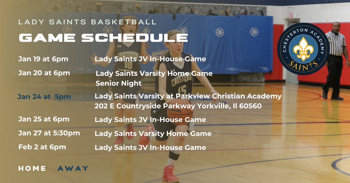 Senior night for both the Lady and Gentleman Saints will be this upcoming Thursday, January 20. We have a JV Gentlemen’s game at 4:30 p.m., a Varsity Ladies game at 6pm, and a Varsity Gentlemen’s game at 7:30 p.m. Come honor our seniors at the Varsity games! The games will be a blue out, so please wear your blue Chesterton spirit wear or any blue clothing you have!